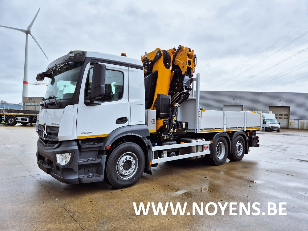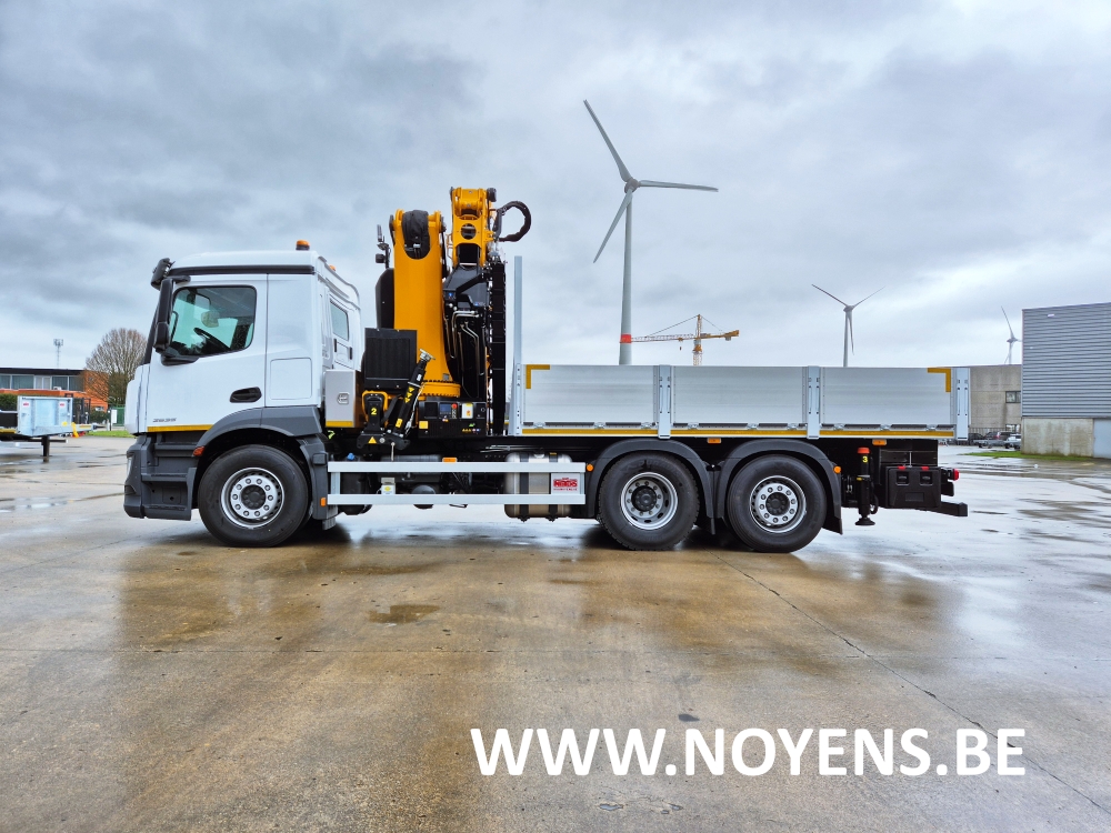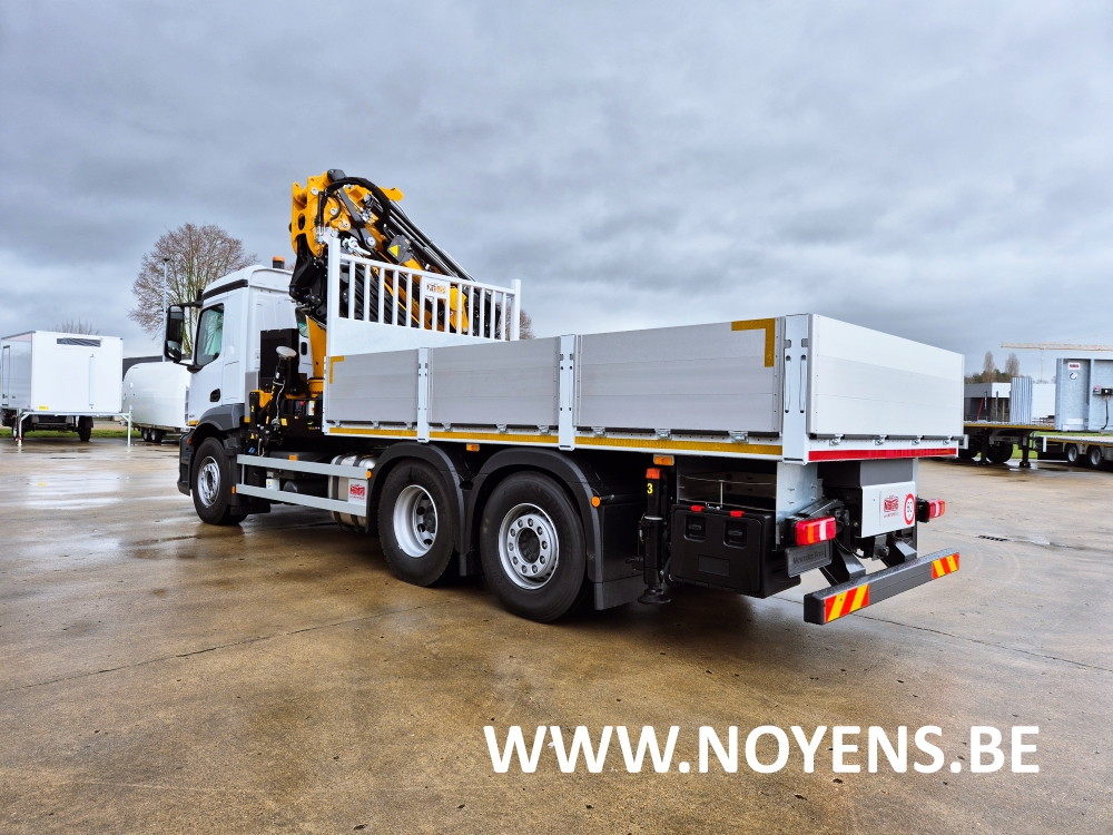 Deze vrachtwagen met dakdekker laadkraan werd voorzien van een volledig verzinkte open laadbak uitgerust met zijdelings neerklapbare aluminium borden.