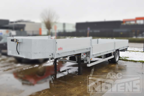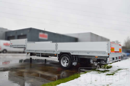 Deze dieplader heeft buiten het behandelde verzinkte chassis ook aluminium neerklapbare zijborden die volledig geanodiseerd zijn uitgevoerd. De standaadr voorzien luchtvering op dit type trailers geeft onze klant het optimale rijcomfort dat hij nodig heeft voor zijn dagdagelijkse ritten voor het aanbrengen van signalisatiewerken.