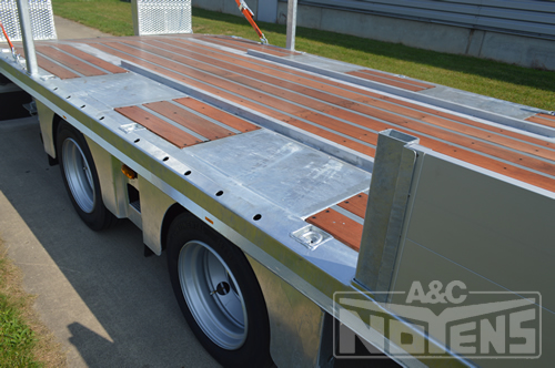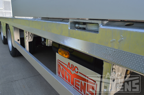 Vooraan is een afneembaar frame voorzien dat verankerd is d.m.v. twistlocks. Zijdelings zijn vooraan links en rechts uitneembare geanodiseerde bordwandprofielen voorzien.
