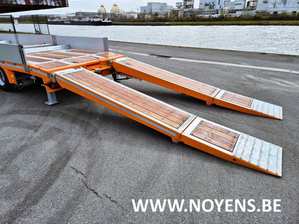 Voor het transport van graafmachines en kabelhaspels wordt deze nieuwe Noyens dieplader oplegger ingezet.